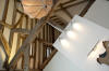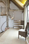 When people walk into the barn for the first time they almost always say “wow!” as they look at the majestic grey beams and the rafters soaring above. This contrasts with the modern styling of the interior using glass, crisp white walls and new oak to carve out the mezzanine bedrooms without detracting from the feeling of lightness and space.
